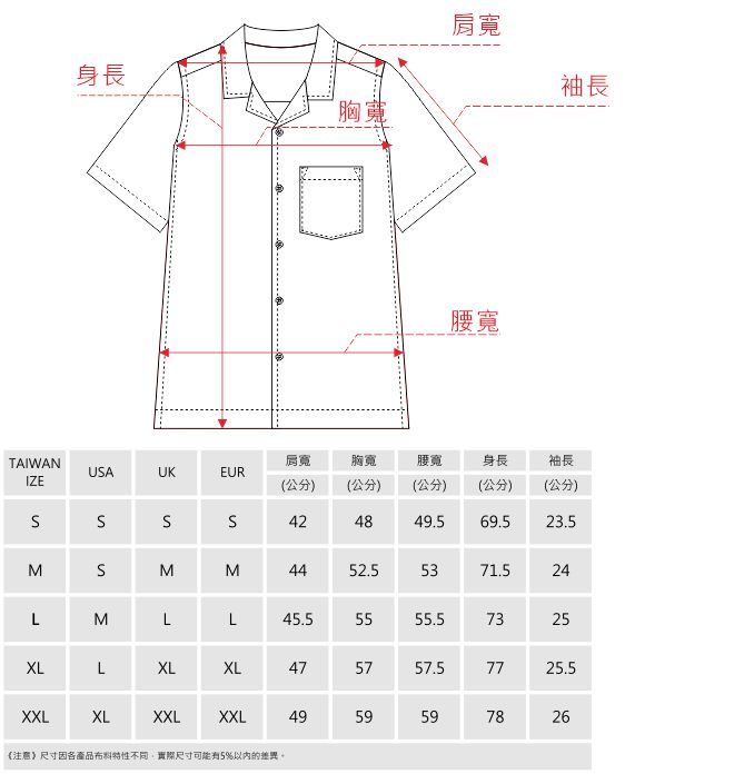 古巴領型的襯衫,領口呈V 領,且呈現微微的外翻,衣服到領子的剪裁為一體成形,外翻的 V 領設計,